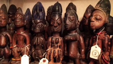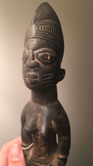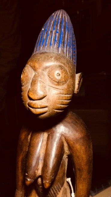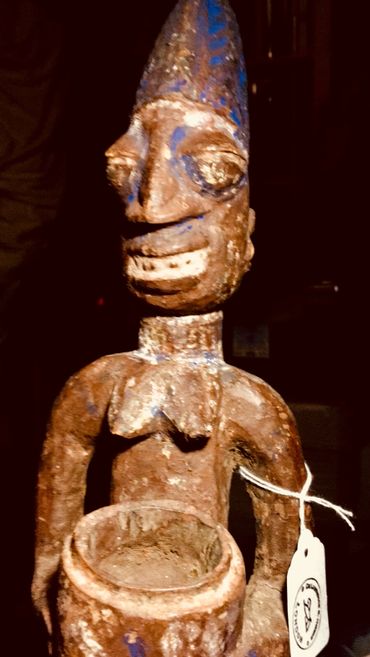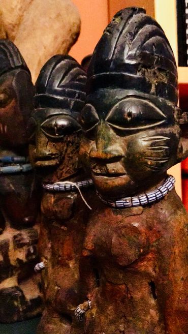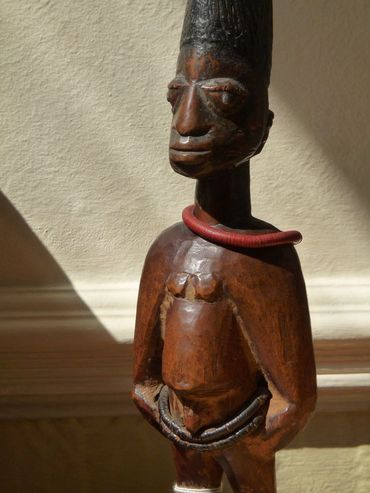 I absolutely love Ibeji and the story behind them, and feel so sorry for them - imagine selling your child? - that I buy them and take them home to meet the others. Visitors to my house are often somewhat taken aback as they cover most of the shelves that are not filled with books.